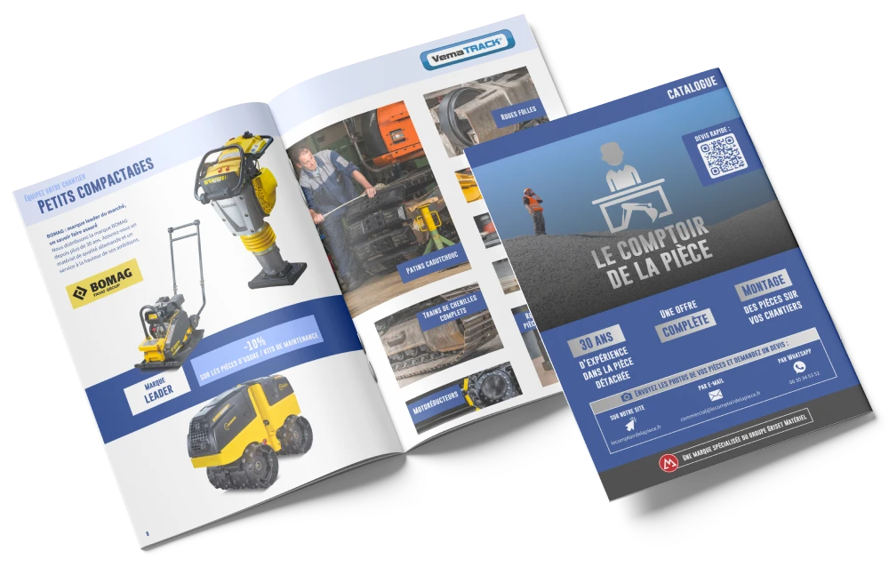 Vous découvrirez dans ce catalogue l’étendue des catégories de produits que nous proposons pour équiper votre chantier et équiper votre matériel, mais aussi nos trains de roulement et les pièces d’usure et de suivi. Nos experts sont à votre disposition pour trouver la pièce idéale pour votre besoin.